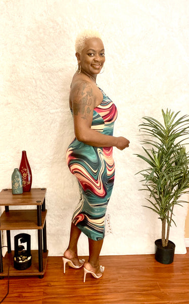 Features it's marble print long sleeve one shoulder with side cut. Great material and super soft and stretchy.